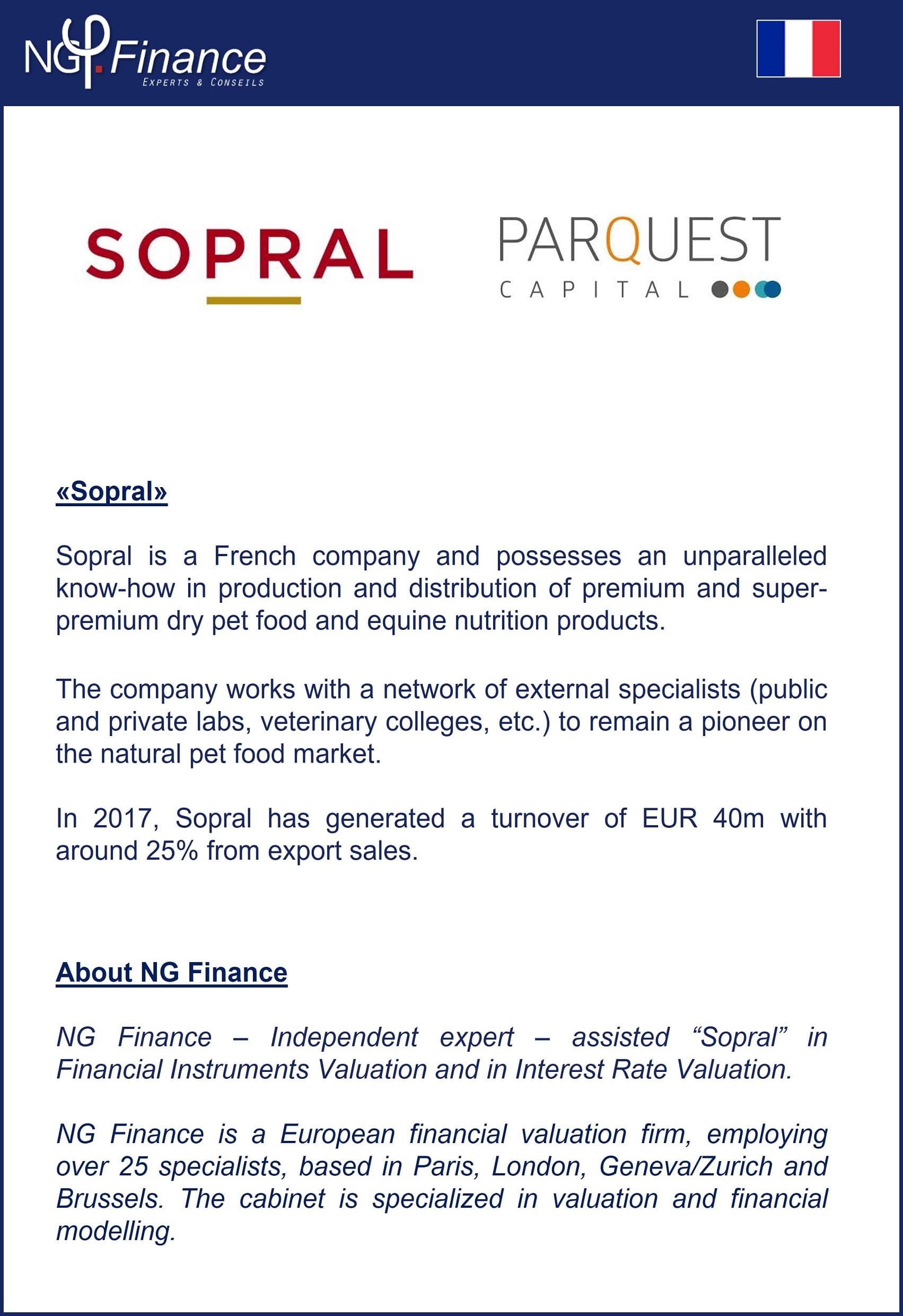 Sopral – NG Finance a accompagné la société Sopral dans sa valorisation d’instruments financiers